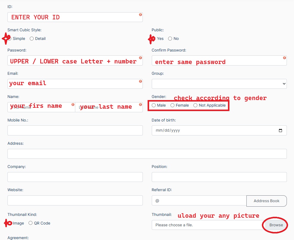 Click the 'Register' button in the upper right corner of the SmartCubic homepage. Enter required information such as ID, password, email, name, phone number, then click the link sent to your email to activate your account. After activation, enter your profile photo and additional information to complete your account. You can strengthen security settings during this process.
